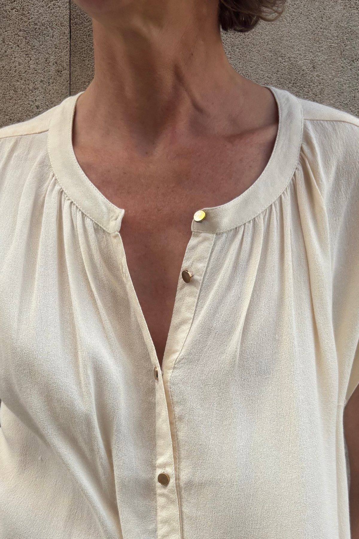 La blouse Bentley est un modèle loose et léger qui vous apporte élégance et confort. Elle se boutonne avec 7 boutons en laiton et dispose d’un col mao.